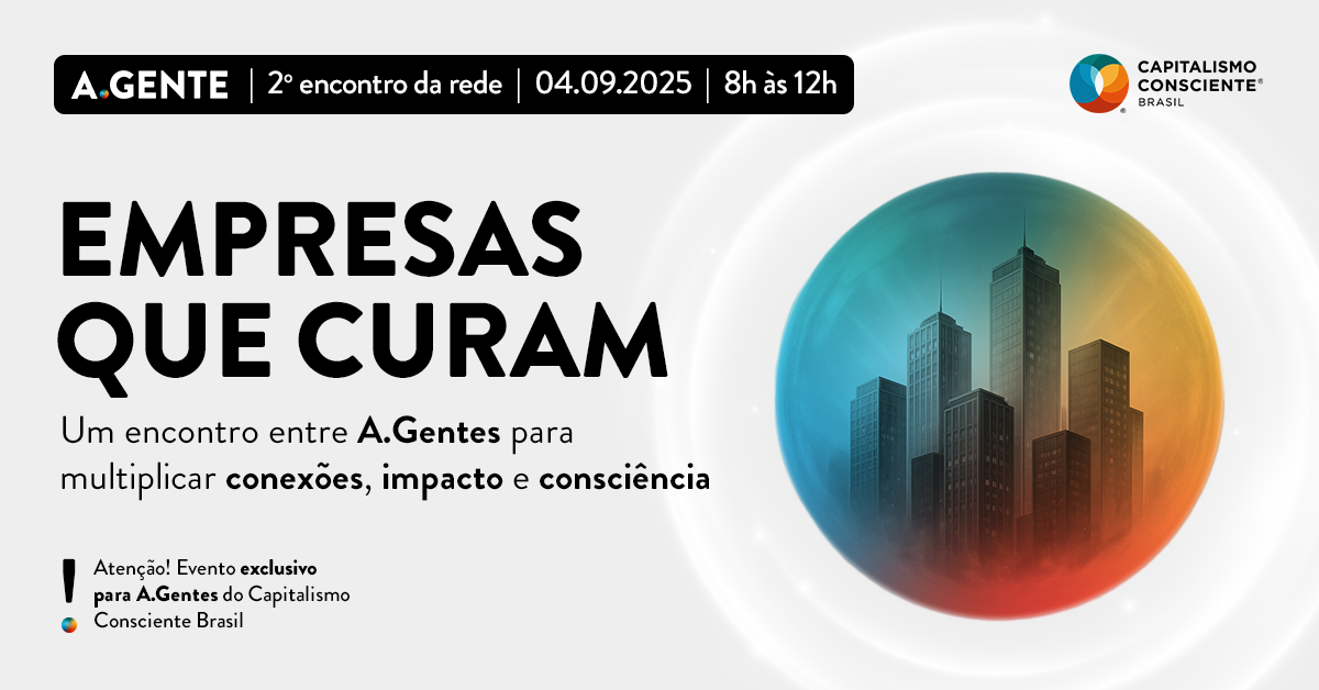 Este evento será um espaço de inspiração e reflexão sobre o papel das organizações na construção de um futuro mais justo, sustentável e humano. Vamos mostrar que empresas não são apenas geradoras de resultados financeiros, mas sim agentes de transformação capazes de curar feridas sociais, ambientais e espirituais. Mais do que um encontro, esta é uma celebração dos A.Gentes do Capitalismo Consciente Brasil, pessoas que acreditam e praticam diariamente a transformação de empresas em forças para o bem. O “Empresas que Curam” é, antes de tudo, um convite aos A.Gente do Capitalismo Consciente para refletirem juntos: Qual é a cura que a sua empresa pode oferecer ao mundo?