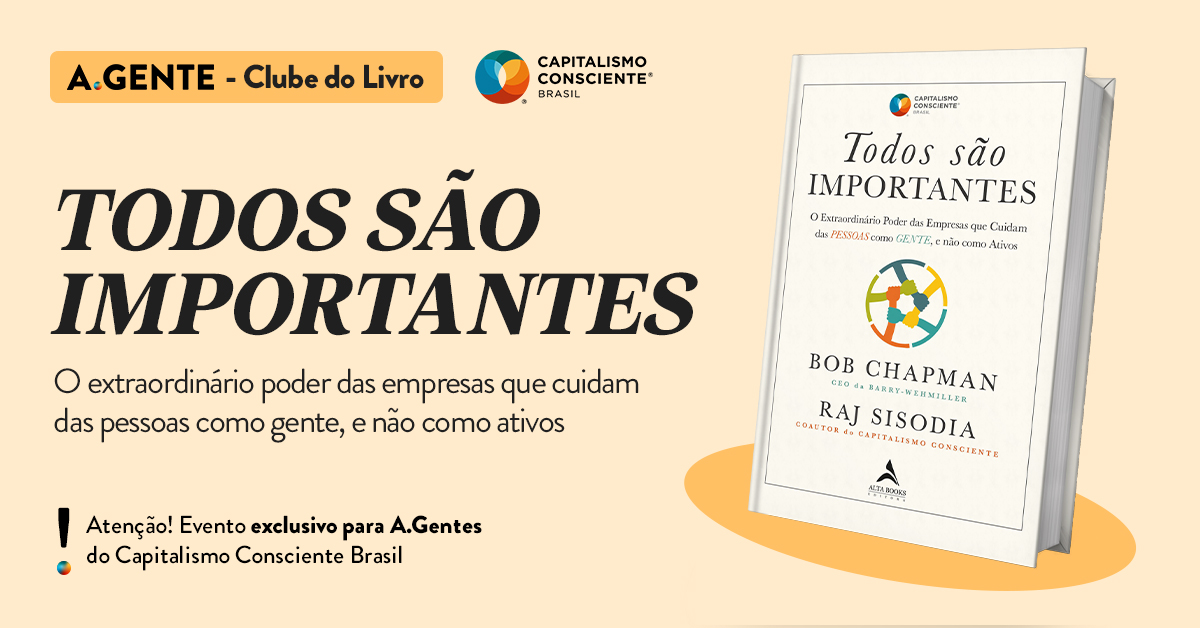 Quando pessoas se reúnem para aprender juntas, algo maior acontece: ideias ganham força, culturas se transformam e o futuro dos negócios se torna mais humano. É nesse espírito que retomamos o Clube do Livro do Capitalismo Consciente Brasil (CCB). Um espaço de reencontro, diálogo e inspiração, onde cada capítulo é um convite para refletir sobre o papel da liderança consciente e sobre o impacto de cuidar genuinamente das pessoas. Ao longo de quatro encontros online, vamos mergulhar no livro “Todos são Importantes”, de Bob Chapman e Raj Sisodia. Uma obra que mostra como as organizações podem prosperar ao colocar a dignidade humana no centro de suas decisões. Evento exclusivo para A.Gentes do Capitalismo Consciente Brasil.